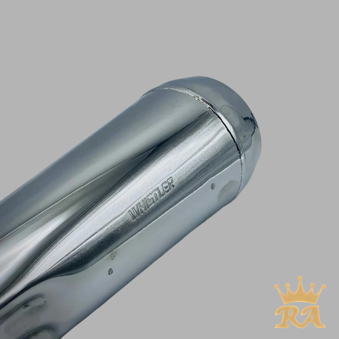 Experience the best sound and chrome finishing with WHISTLER, Pakistan’s top-rated sound exhaust for Honda CG125. Designed for CG125 enthusiasts, it brings back the thunder and powerful sound of old Japanese model bikes. Upgrade your riding experience with WHISTLER. Upgrade your motorcycle’s exhaust system with the Whistler Silencer. Crafted with top-quality materials and a chrome finish, it delivers the best sound experience and enhances your ride with this must-have accessory.